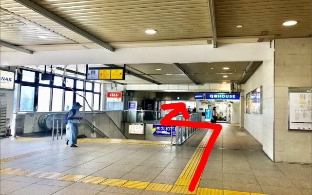 階段は降りずに右側通路を通ってください。QBハウスさんを通り過ぎます。