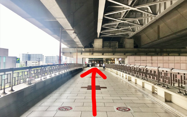 陸橋が続いているのでまっすぐ歩いて来てください。歩いて行くと右手にローソンさんがあります。そのまま直進ください。